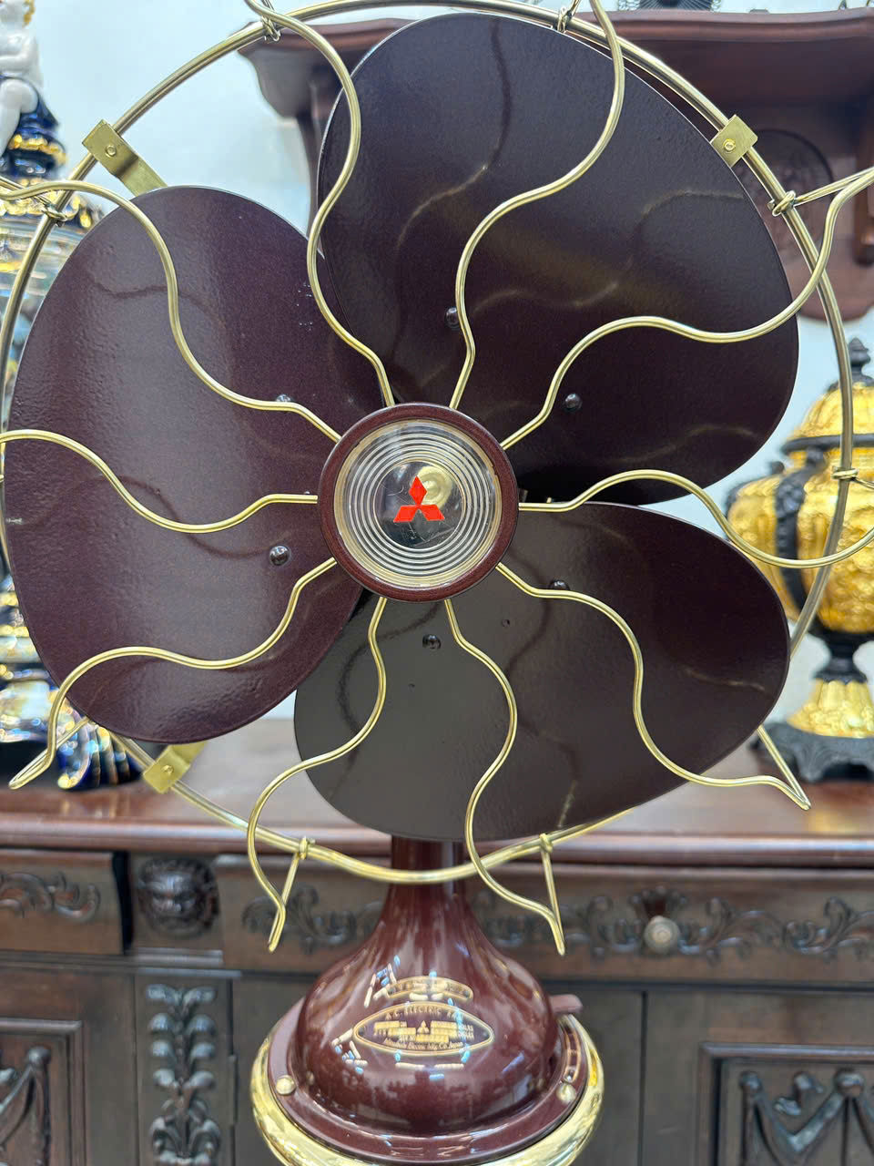 Chiếc quạt cây cổ cánh 35 này có xuất xứ chuẩn Nhật Bản, thuộc thương hiệu Mitsubishi – một trong những tập đoàn công nghiệp hàng đầu thế giới. Giai đoạn 1920–1930 là thời kỳ Nhật Bản đẩy mạnh công nghiệp hóa, các sản phẩm cơ khí, điện gia dụng được sản xuất với tiêu chuẩn rất cao, độ bền vượt trội. Đối với giới chơi quạt cổ, nhãn hiệu Mitsubishi Nhật Bản luôn nằm trong nhóm được săn đón vì chất lượng động cơ, độ ổn định và thiết kế tinh xảo.