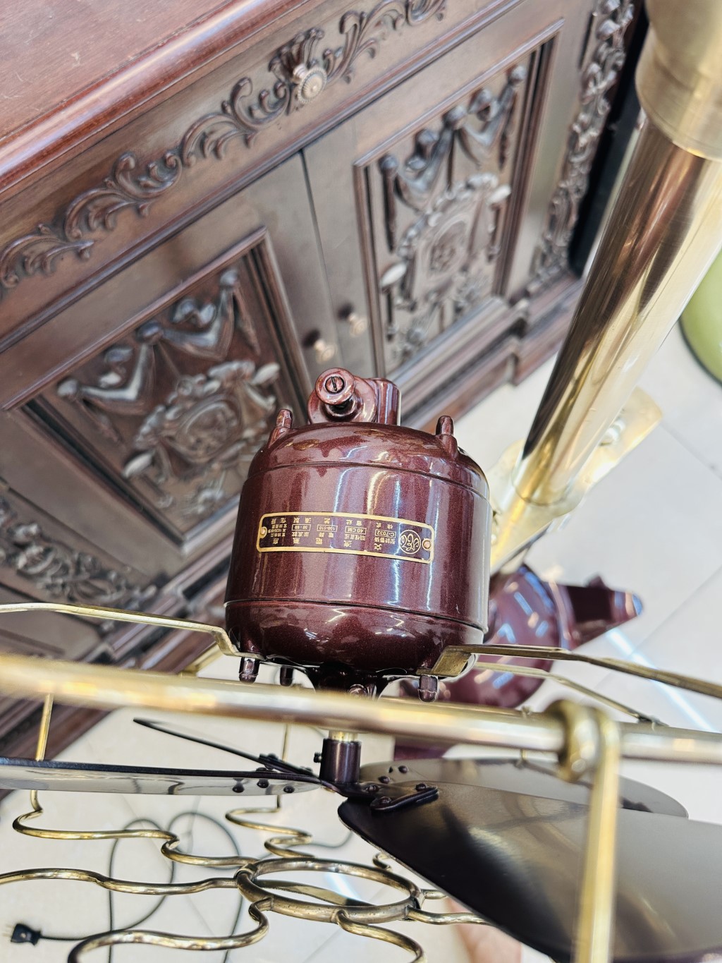 Về mặt kỹ thuật, thân đồng nguyên khối không chỉ mang lại vẻ đẹp cổ điển mà còn đóng vai trò như một khối tản nhiệt tự nhiên cho toàn bộ hệ thống. Đồng có khả năng dẫn nhiệt tốt, giúp nhiệt lượng từ động cơ truyền ra môi trường nhanh hơn, góp phần giữ cho nhiệt độ vận hành ổn định. Kết hợp với thiết kế bầu củ kín, cuộn dây đồng chất lượng cao và chuẩn điện áp 110V, quạt có thể hoạt động liên tục trong thời gian dài mà không bị quá nhiệt, điều vốn rất được coi trọng trong các thiết bị điện cổ.